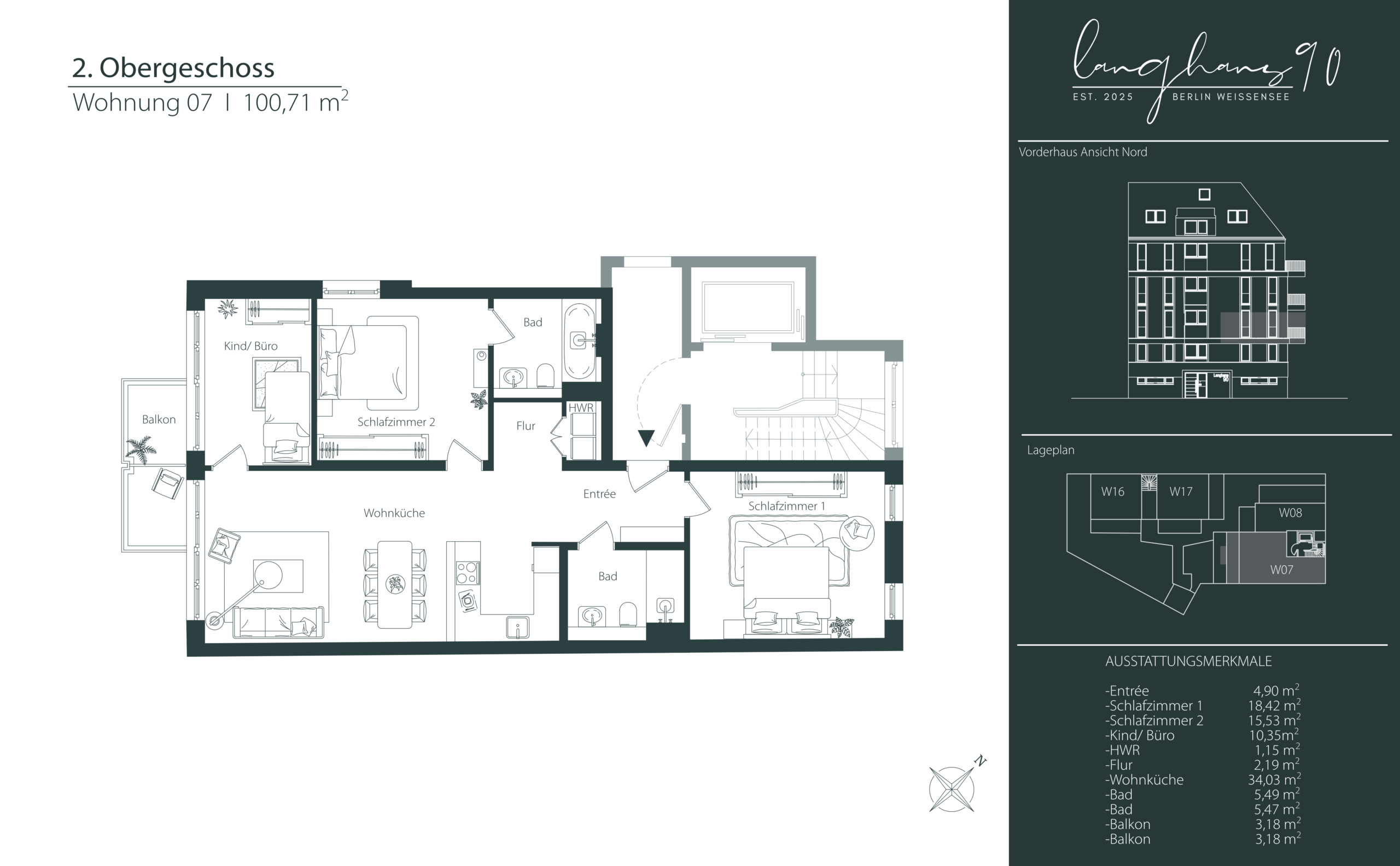 Großzügige Grundrisse, ein begrünter Innenhof und hochwertige Ausstattung machen die Langhansstraße 90 zu einem Ort, an dem Anspruch und Alltag perfekt zusammenfinden.